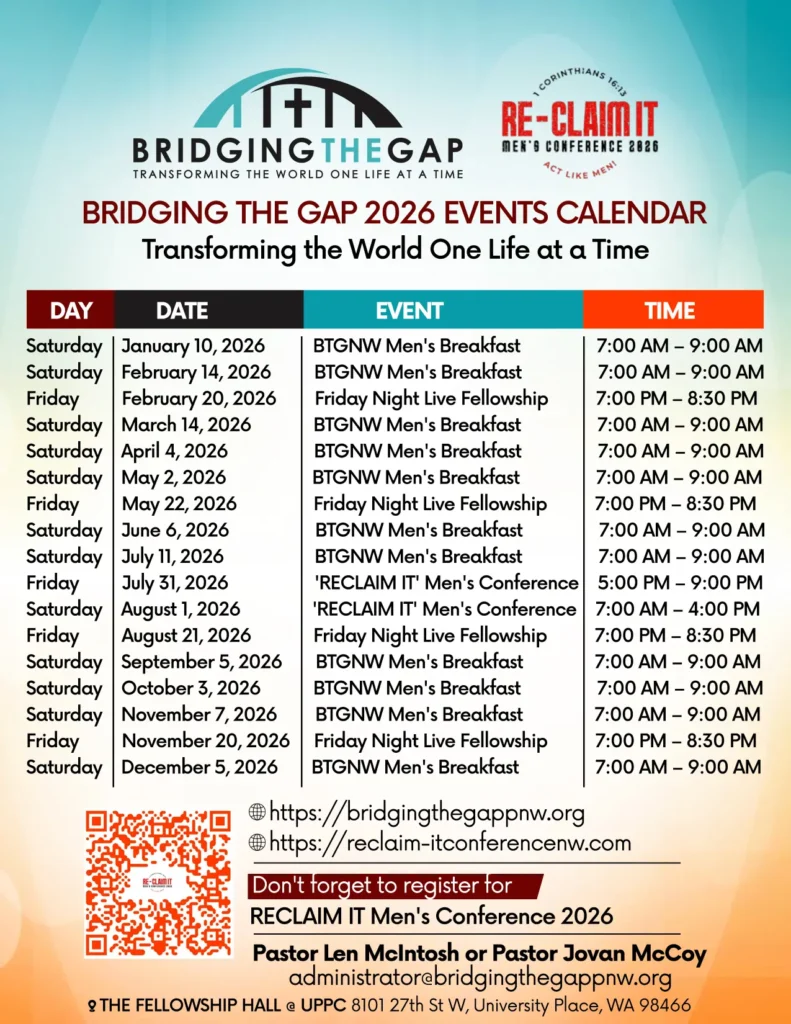 In 2025, Bridging the Gap PNW walked alongside more than 500 men across the Puget Sound region, helping them grow in confidence, clarity, and courage as followers of Christ and leaders in their homes, churches, and communities.